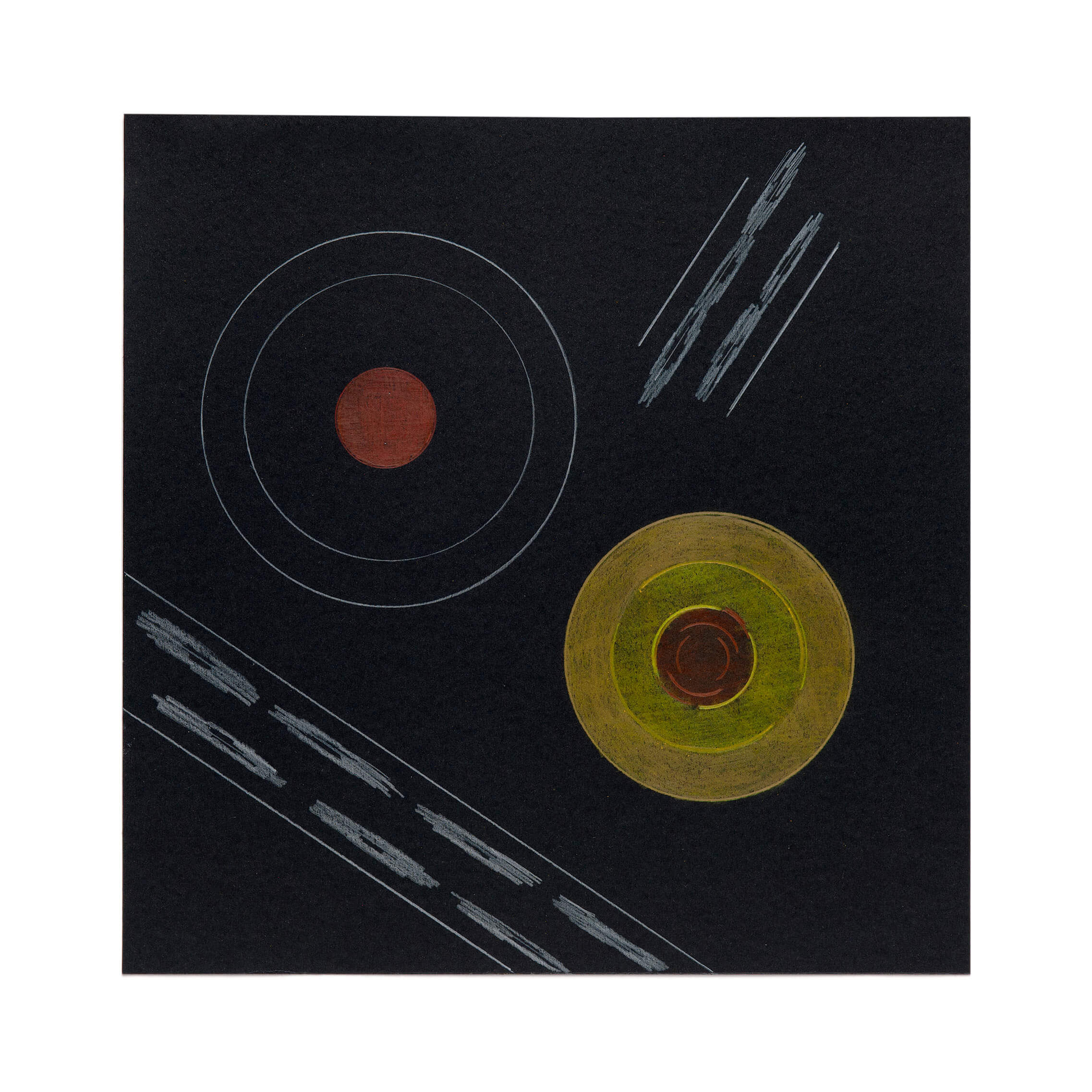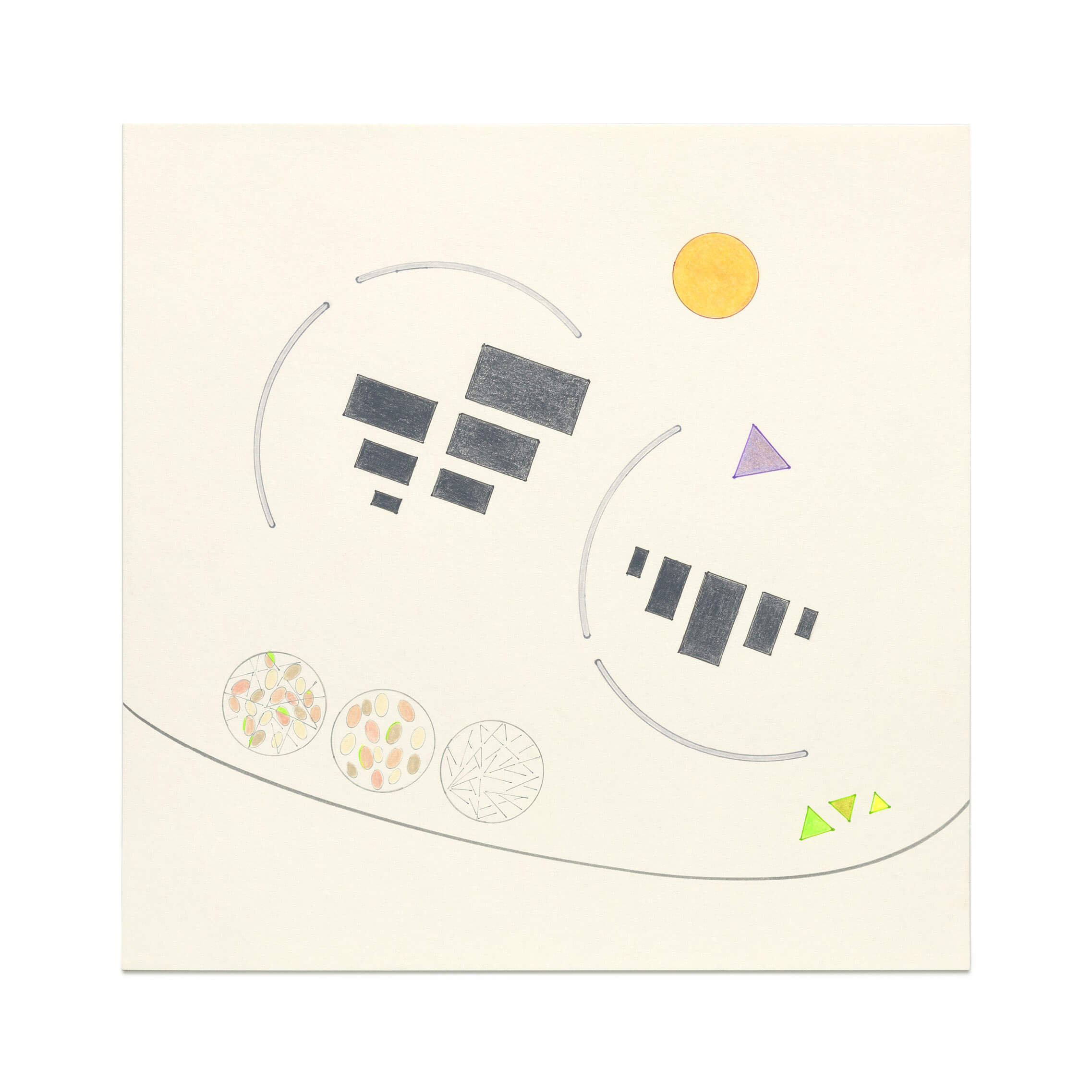 Tonti's work is distinguished by its juxtaposition between latent dynamism and subtle precision, creating a sense of calm in motion that has the power to deeply resonate with viewers. This is reflected in the titles of her pieces: works such as Visions of Japan and Separation clearly indicate Tonti's focus on movement and process. Many of her motifs feature a subtle interplay between converging and diverging forms and lines, alongside a restrained use of colour. Immersing oneself in Tonti's gentle formal language invites self-reflection and an awareness of one's own visions.